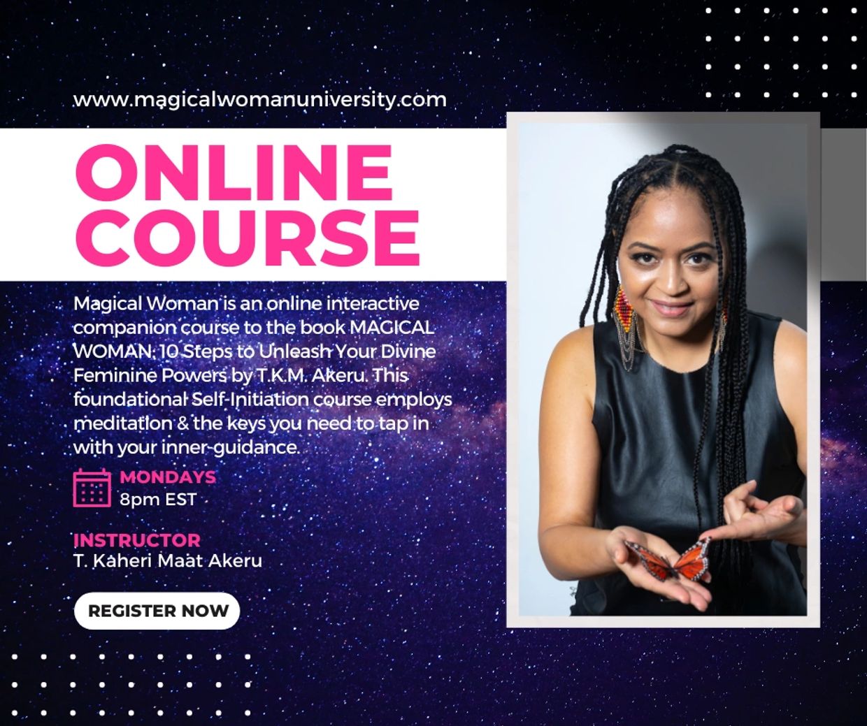 Magical Woman: 10 Steps to Unleashing Your Divine Feminine Powers, will take you through a natural cycle series of self-transformation shifts. In this course you will: